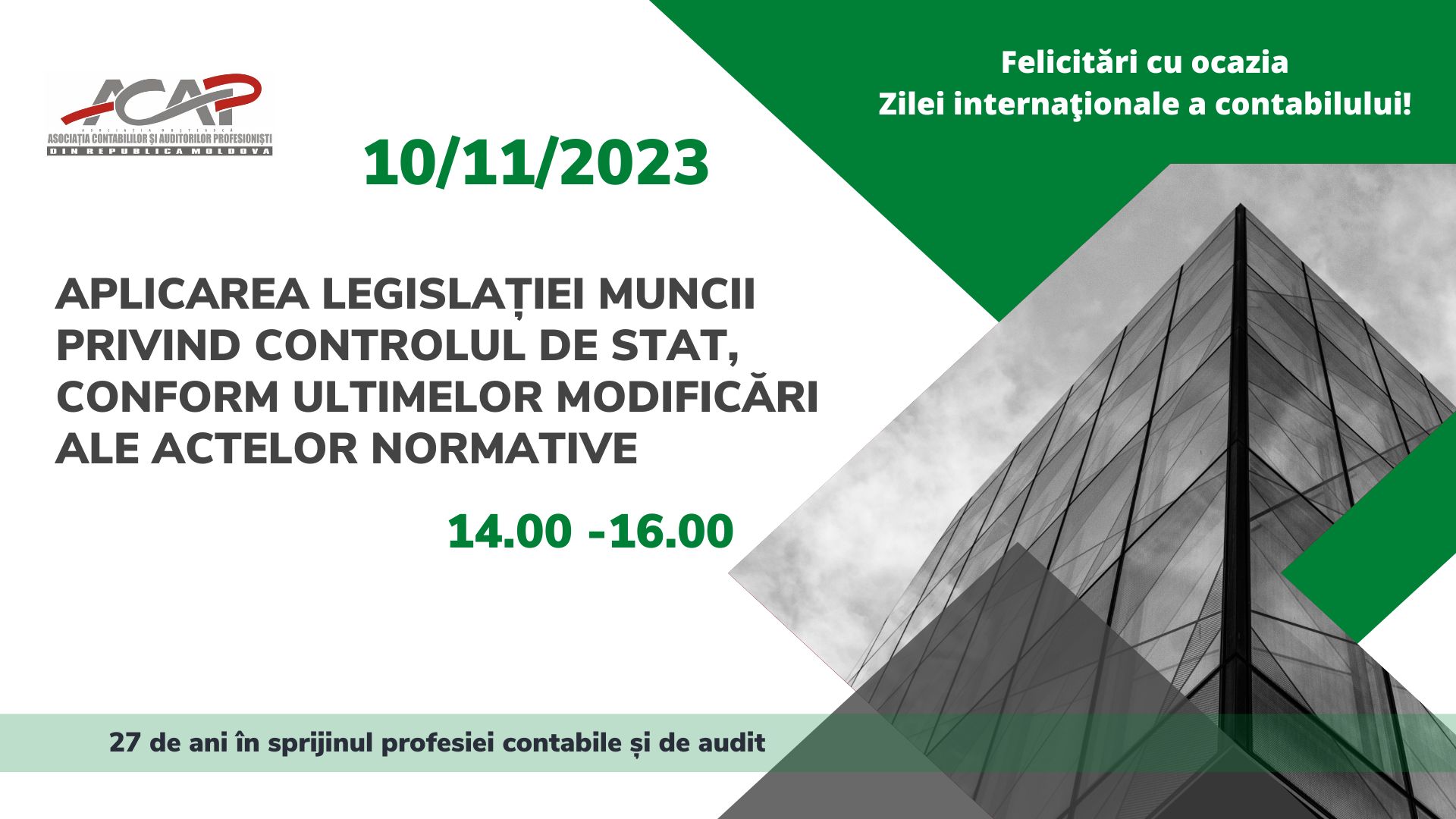 ACAP RM a organizat webinar-ul cu genericul ”Aplicarea legislației muncii privind controlul de stat conform ultimelor modificări ale actelor normative” în data de 10 noiembrie .