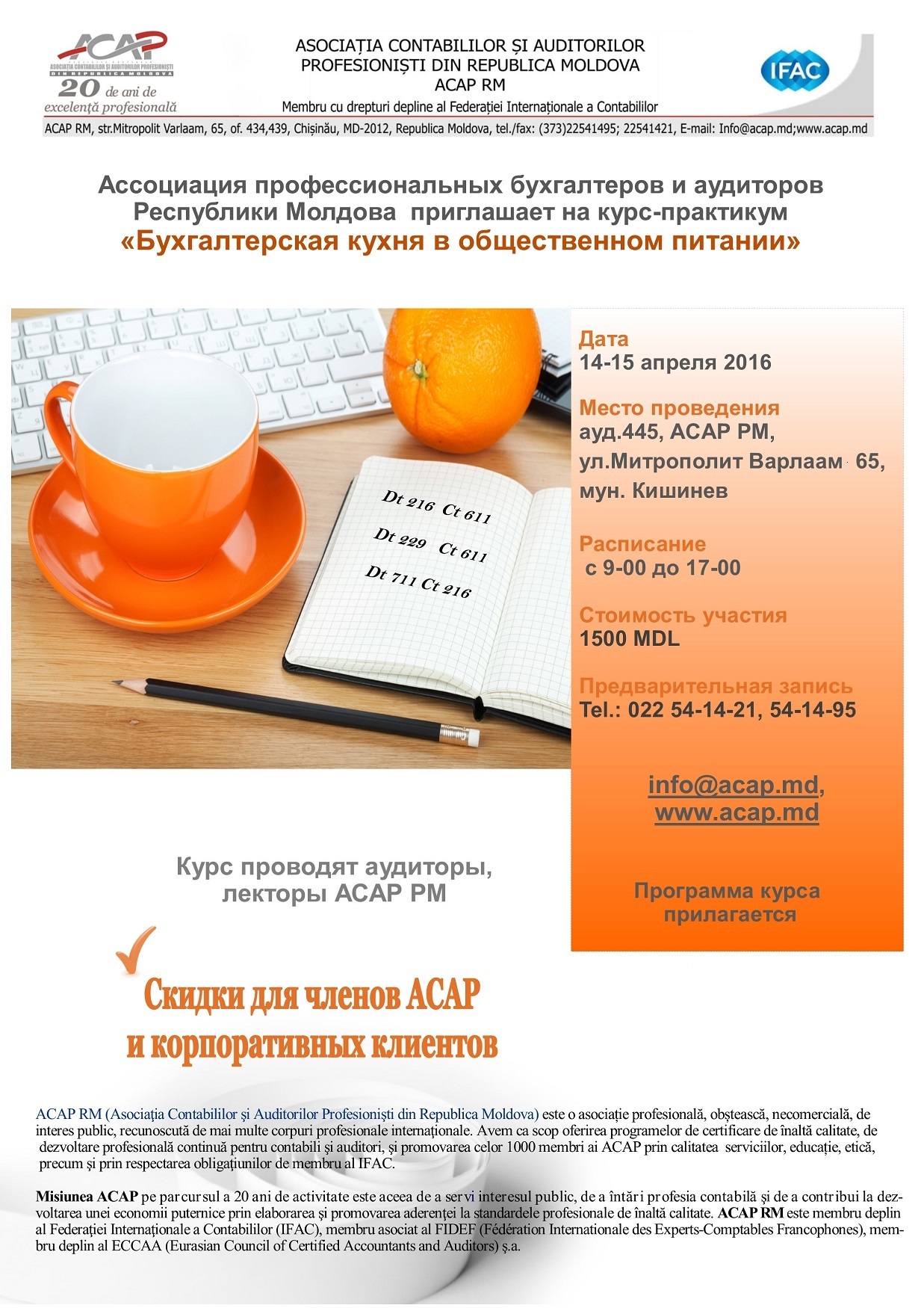 14-15 aprilie 2016 ACAP Va invită la curs-practic Recete contabile în alimentația publică