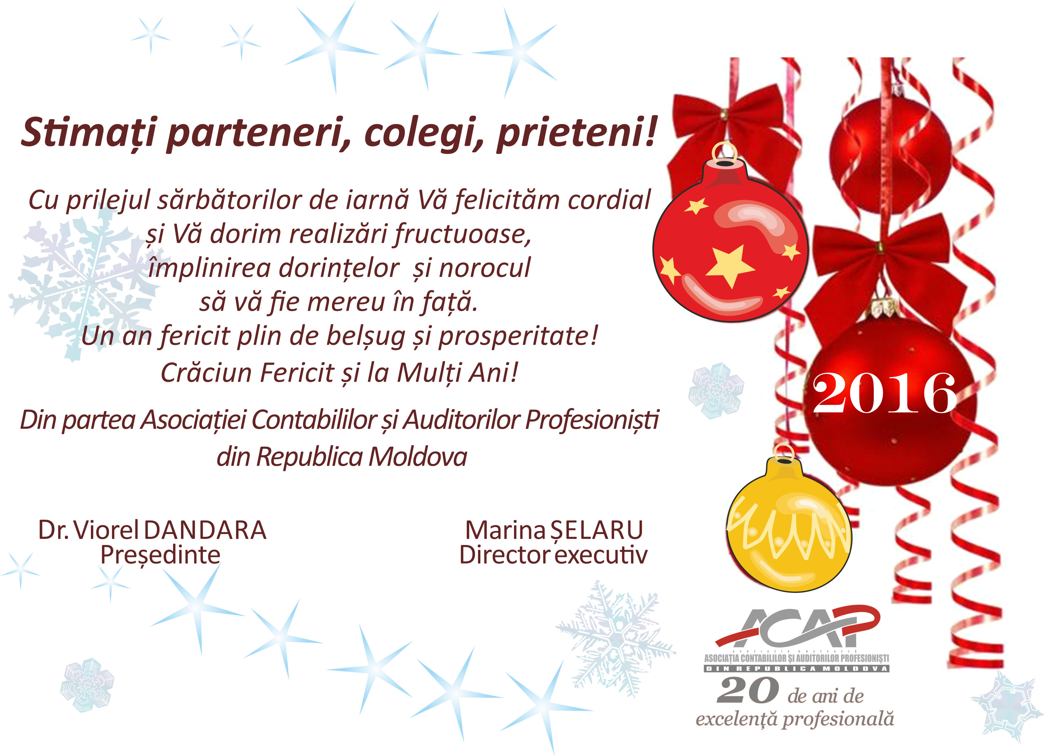 ACAP Felicită toti membrii săi, partenerii, colegii cu Sarbatori de Iarna! Craciun Fericit si la Multi Ani!
