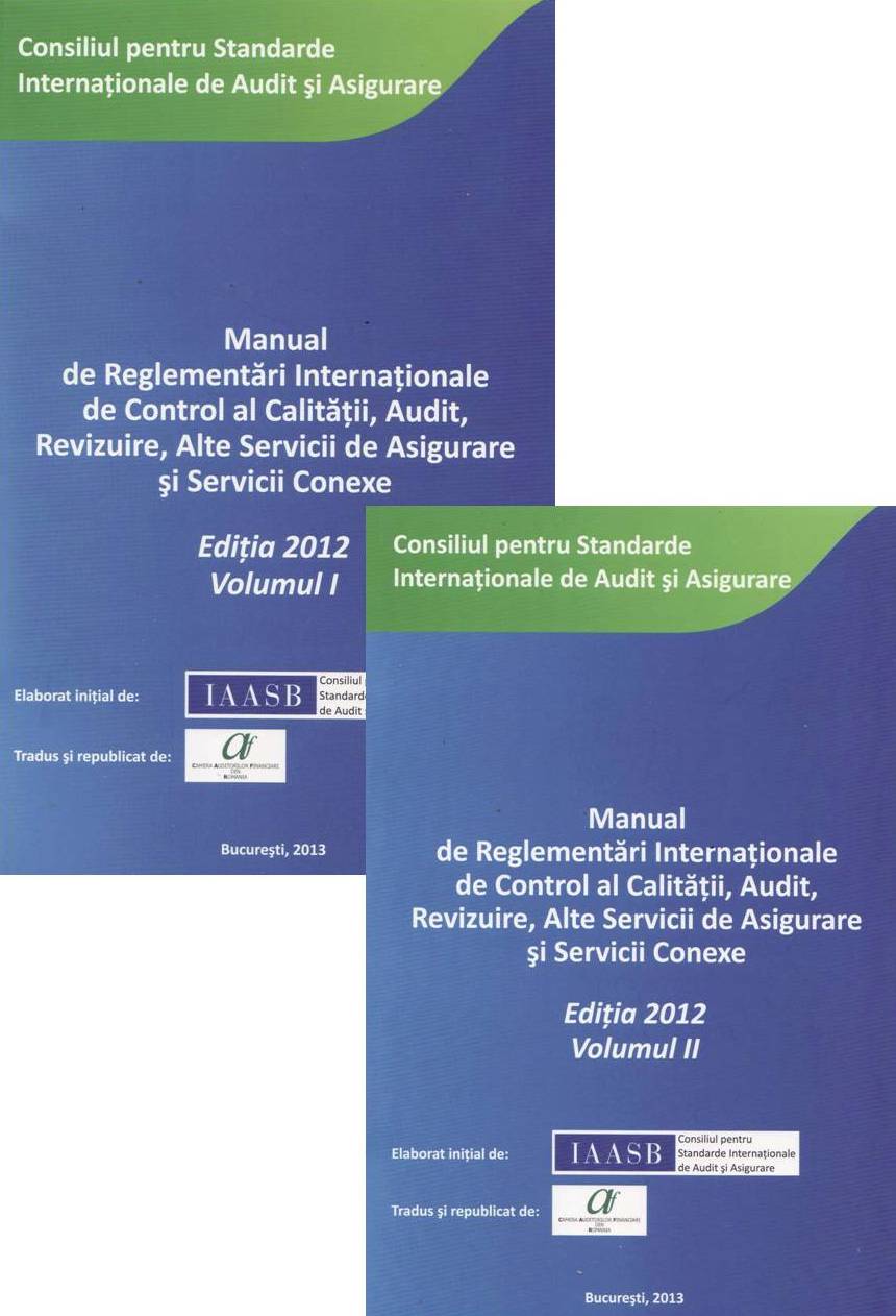 Manual de Reglementări Internaţionale de Control al Calităţii, Audit, Revizuire, Alte Servicii de Asigurare şi Servicii Conexe, al Consiliului pentru Standarde Internaţionale de Audit şi Asigurare, publicat de Federaţia Internaţională a Contabililor (IFAC) în iulie 2012 în limba engleză, a fost tradus în limba română de Camerei Auditorilor Financiari din Romania în martie 2013 şi este reprodus cu permisiunea IFAC.