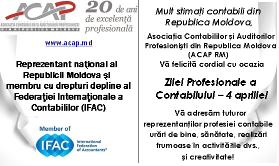 ACAP RM felicită contabili din Republica Moldova cu ocazia Zilei Profesionale a Contabilului - 4 aprilie!