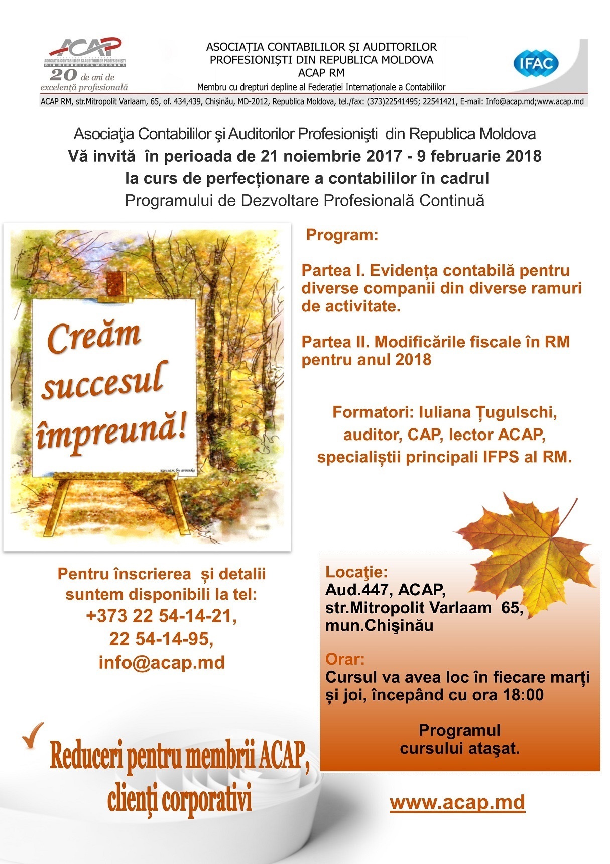 ACAP RM Vă invită în perioada 21 noiembrie - 9 februarie 2018 la curs de perfecţionare a сontabililor