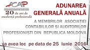 Asociaţia Contabililor şi Auditorilor Profesionişti din Republica Moldova convoacă la 25 iunie 2016 Adunarea Generală a Membrilor săi