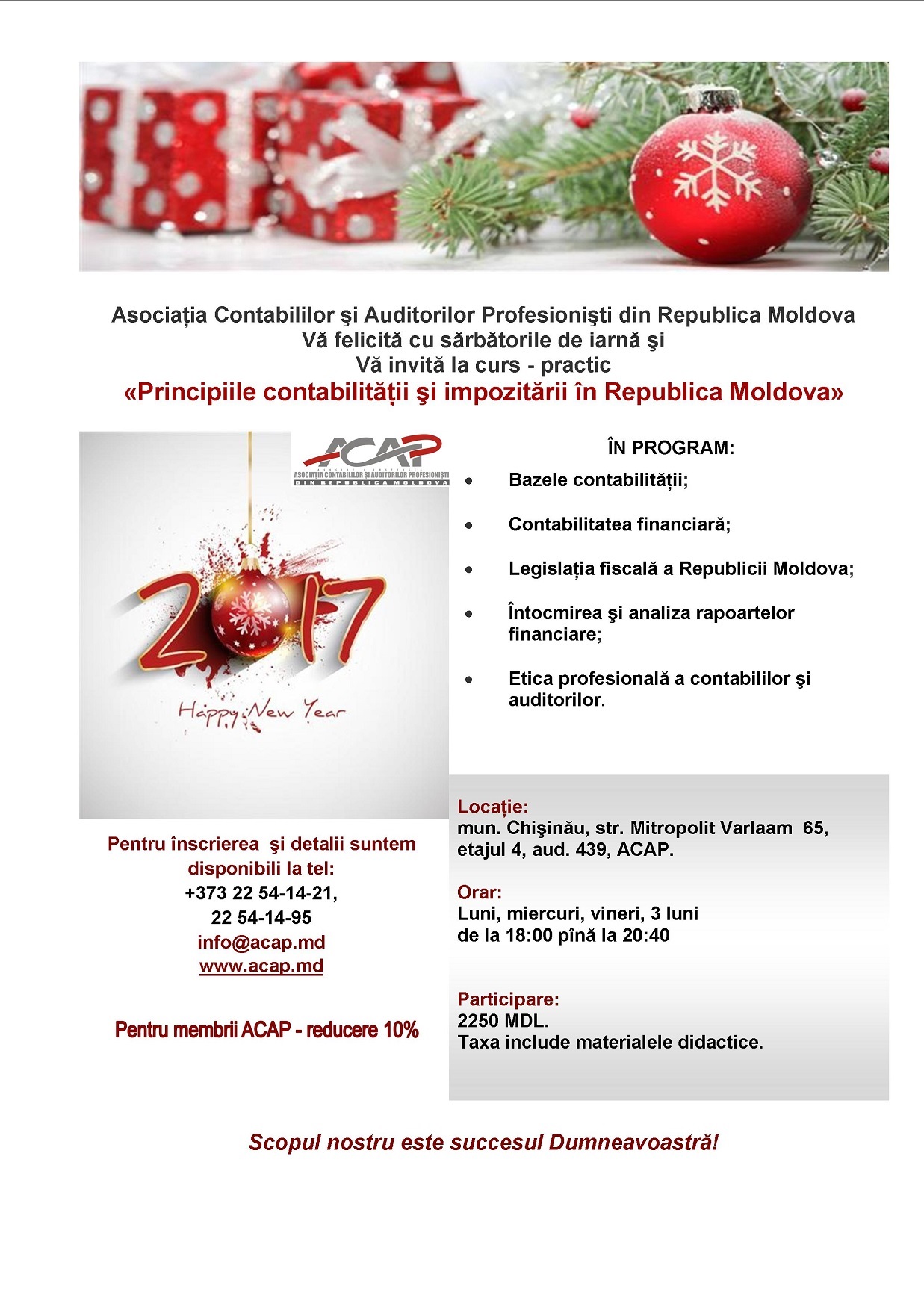 Evidența contabilă pentru începători! ACAP RM Vă invită la curs-practic "Principiille contabilității și impozitării în Republica Moldova". Începutul cursului - 18 ianuarie 2017.