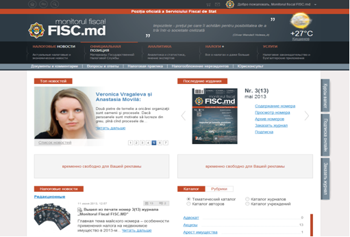 O dată cu lansarea oficială a versiunii electronice a revistei %26bdquo;Monitorul Fiscal FISC.MD%26rdquo;, care a avut loc la data de 09.07.2013 %26ndash; portalul www.monitorul.fisc.md %26nbsp;a devenit %26icirc;ncă un mod de comunicare cu specialiştii %26icirc;n domeniul fiscal pentru toţi cei care sunt cointeresaţi de a afla mai multă informaţie.%26nbsp;