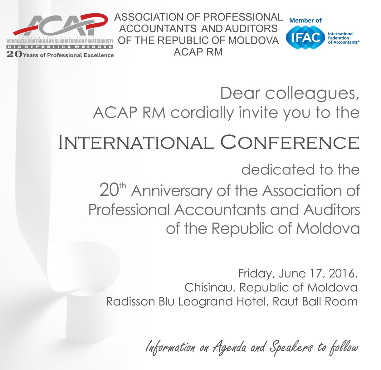 ACAP RM organizează cu ocazia aniversării a 20 ani de excelenţă profesională Evenimentul Internaţional cu genericul: