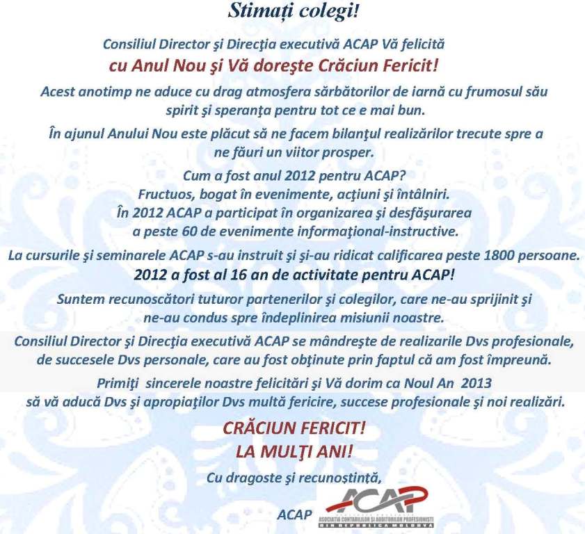 Inregistrarea preliminară ON-LINE a membrilor noi ACAP RM