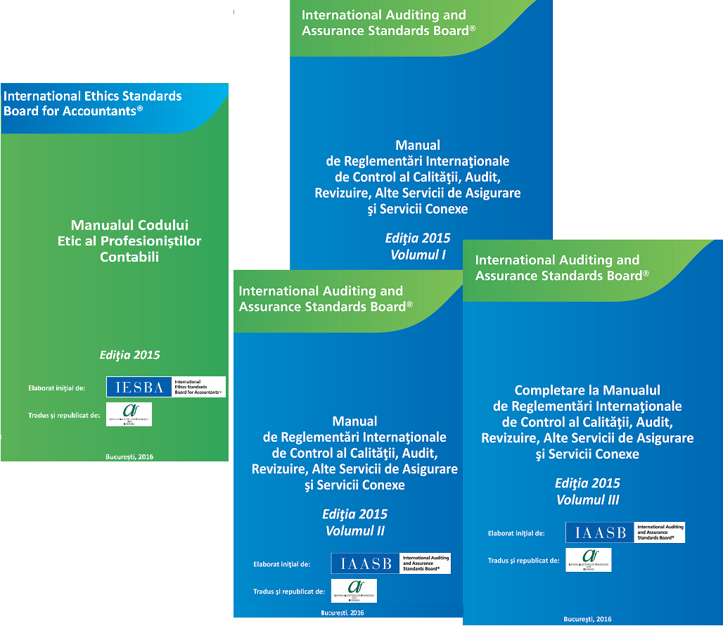 - Manual de Reglementări Internaţionale de Control al Calităţii, Audit, Revizuire, Alte Servicii de Asigurare şi Servicii Conexe, Ediția 2015, Volumul I <