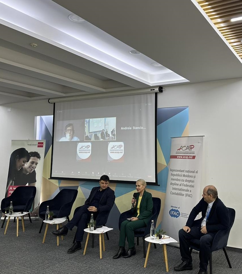 Andreia STANCIU, Director ACCA pentru Europa de Sud, a prezentat dilemele etice cu care contabili și auditorii se confruntă în era digitală. Aspectele cu referire la rapoartele de sustenabilitate devin tot mai prevalente în mediul de afaceri, subliniind importanța că încrederea publicului în practica contabilă și de audit depinde de integritatea și etica profesioniștilor din domeniu. Iar adaptarea la schimbările tehnologice și cerințele raportării de sustenabilitate reprezintă o oportunitate de a demonstra angajamentul în a asigura un mediu de afaceri transparent, responsabil și etic.