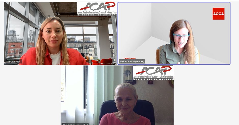 Președinta Consiliului ACAP RM, Elena Panainte și Directorul Executiv, Natalia Zlatina, au avut o întâlnire constructivă cu Andreia Stanciu, Director ACCA pentru Europa de Sud, în cadrul cărei au discutat provocările actuale din domeniul contabil și audit, precum și direcțiile de colaborare strategică pentru perioada următoare.