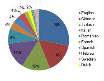 Aici este descifrarea pe limbi (acele ≥ 2%) și țările din această săptămână: