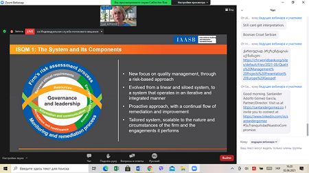 2 июня 2021 года Международная федерация бухгалтеров (IFAC) провела онлайн-семинар в партнерстве с Центром реформирования финансовой отчетности Всемирного банка (CFRR) на тему «Повышение планки управления качеством: новые стандарты управления качеством, выпущенные IAASB», на котором также присутствовали члены ACAP RM. Вебинар проходил онлайн на платформе Zoom и транслировался в прямом эфире на канале YouTube IFAC , участие было бесплатным.