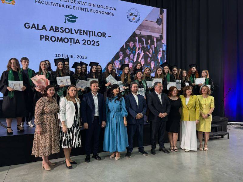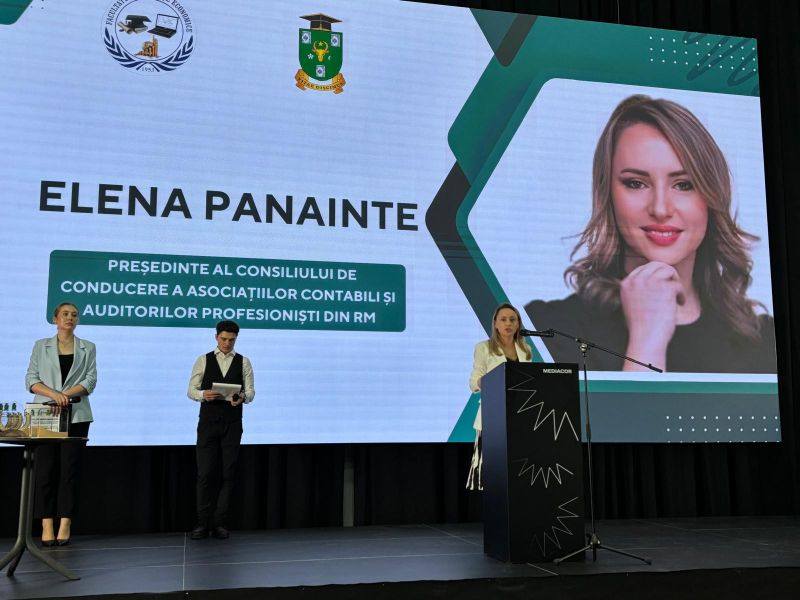 В рамках торжественной церемонии вручения дипломов выпускникам 2025 года Факультета экономических наук Государственного университета Республики Молдова, Елена Панаинте, Председатель Совета директоров ACAP RM, выступила с вдохновляющей речью, обращённой к новому поколению специалистов в области бухгалтерского учёта, маркетинга и туризма. Вместе с ней в мероприятии приняли участие Дан Перчун, Министр образования и исследований Молдовы; Андриана Казаку, Государственный секретарь Министерства образования и исследований Молдовы; Андрей Киcтол, Государственный секретарь Министерства культуры Молдовы; Владимир Долги, Проректор Государственного университета Молдовы; Мария Хэмурару, Декан Факультета экономических наук Государственного университета Молдовы и Мария Кожокару, заведующая Департаментом Бухгалтерского Учета и Информационных Систем Управления.